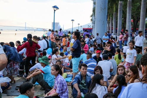 Cũng tới từ hơn 16h30 để có chỗ đẹp, Lê Minh Trí, sinh viên ĐH Xây dựng miền Trung từ Phú Yên ra Đà Nẵng từ 2 hôm nay để vừa du lịch vừa đi xem pháo hoa. “Vì giá vé là khá cao đối với sinh viên nên tụi em chịu khó đi sớm để kiếm được chỗ đẹp bên bờ sông, vừa mát mẻ vừa ngắm được pháo hoa miễn phí”, Trí cho biết thêm.