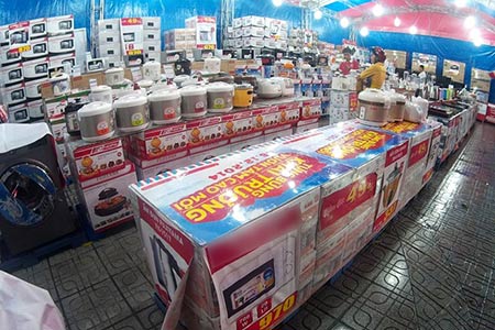 Một siêu thị điện máy trên đường Cách Mạng Tháng 8, quận 3, đã dành nguyên khoảng sân rộng trưng bày hàng điện gia dụng giảm giá, như tủ lạnh, máy giặt, nồi cơm điện... Tại đây, nồi cơm điện các loại giảm 30-50\%, tủ lạnh giá 3 triệu đồng, bàn ủi 99.000 đồng… nhưng cả buổi chiều lượng khách đếm trên đầu ngòn tay, và chỉ có 2 khách mua nồi cơm điện và bàn ủi.