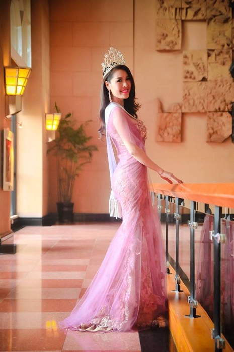 "Gà cưng" của ông bầu Vũ Khắc Tiệp từng gây chú ý khi tham gia cuộc thi Hoa hậu Thế giới người Việt tại Mỹ vào đầu tháng 8 năm 2014.