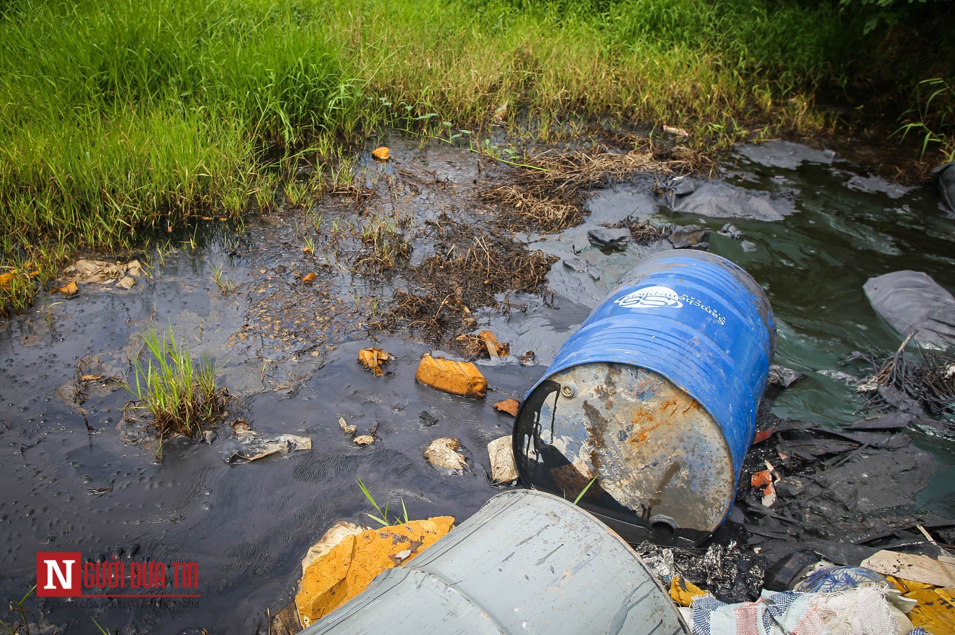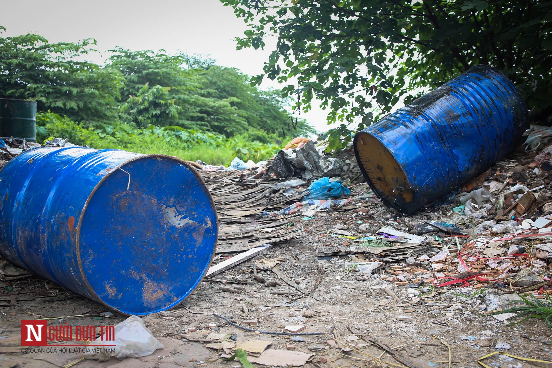 Theo ghi nhận của PV Báo Người Đưa Tin, tại Km 3 + 800 Đại lộ Thăng Long hướng Hòa Lạc - Hà Nội có 10 thùng phuy nghi chứa chất thải công nghiệp độc hại được vứt ngay bên vệ đường, gây ô nhiễm môi trường và ảnh hưởng nghiêm trọng đến cuộc sống người dân nơi đây.