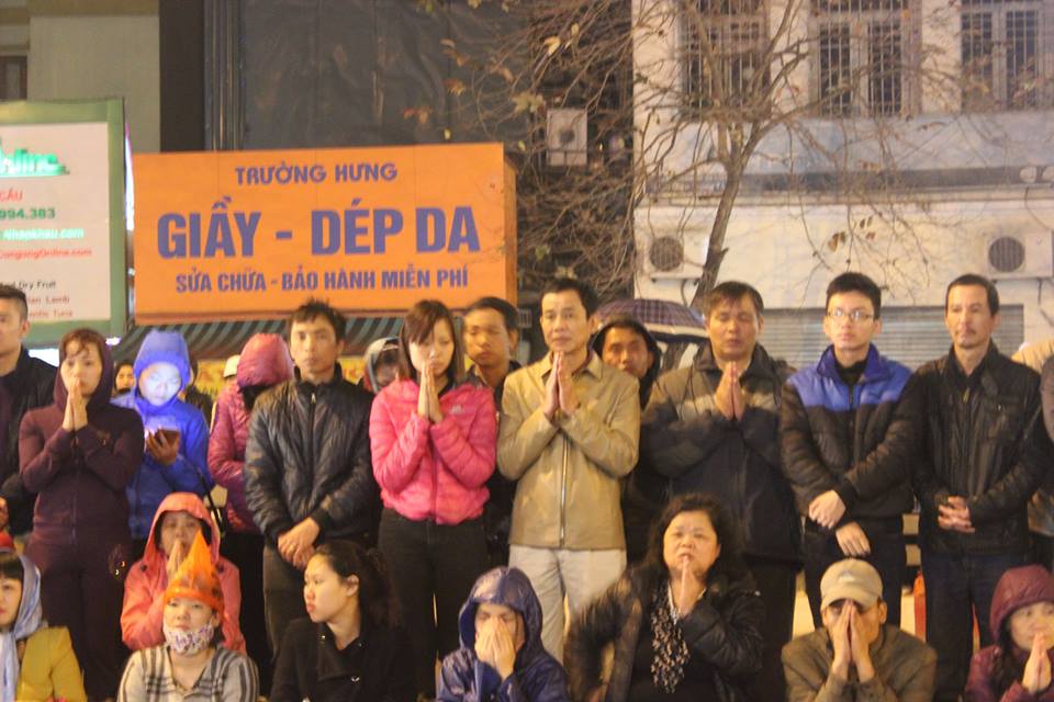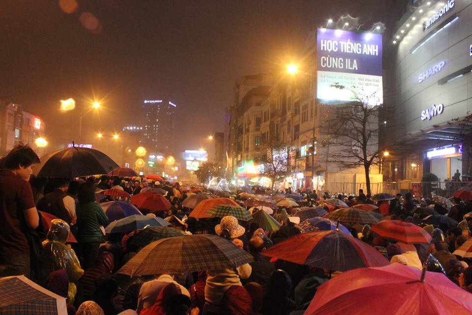 Ghi nhận của PV, đúng 19h cùng ngày, Đại Lễ Cầu An nơi đây chính thức được bắt đầu. Hàng ngàn người đến muộn đã không còn cơ hội vào trong, đành phải ngồi tràn cả ra lòng đường bất chấp thời tiết Hà Nội đang mưa rét và cùng nhau chắp tay vái vọng vào bên trong. Họ cho rằng, làm như vậy để cầu cho bản thân và gia đình gặp nhiều may mắn trong năm mới.