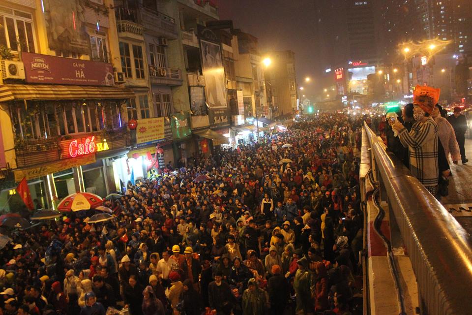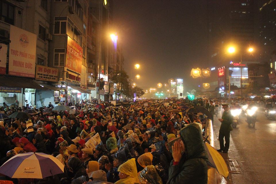 Lượng người quá đông đã tạo thành 1 “biển người” trước cửa Tổ Đình Phúc Khánh. Lực lượng an ninh đã rất vất vả để đảm bảo an ninh và điều tiết giao thông. Dòng phương tiện di chuyển từ hướng ngã tư Tây Sơn – Thái Thịnh lên cầu vượt Ngã Tư Sở đã rơi vào tình trạng ùn tắc cục bộ.