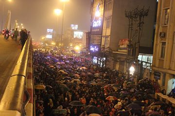 ![]() Đúng 19h, Đại lễ cầu an chùa Phúc Khánh chính thức bắt đầu. Trời mưa phùn, hàng ngàn người đội mưa đứng nghiêm cẩn vái vọng về phía chùa. |