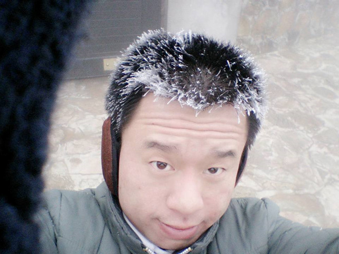Trời lạnh đến mức nhiều người tóc bị đóng băng. |