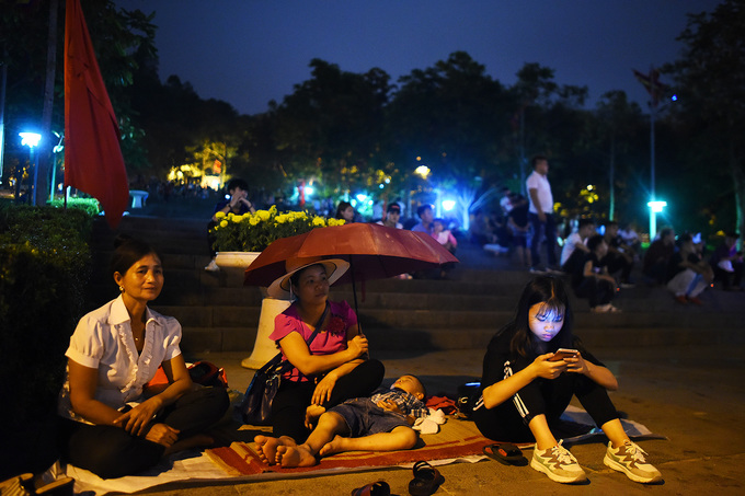 Rất nhiều du khách từ nơi xa đến đây phải thuê chiếu, thậm chí người mang chiếu từ nhà, trải ra các lối đi để ăn uống, nghỉ ngơi. Ảnh: Vnexpress |