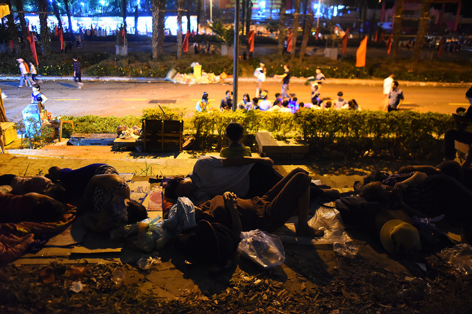Ngay cả những người đàn ông cũng tỏ ra mệt mỏi nằm ngủ ngon bên vệ đường. Ảnh: Vnexpress |