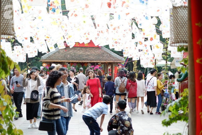 Từ sáng, rất đông các gia đình đã đến Văn Miếu . Ảnh: Soha |