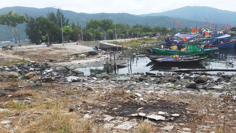 Dọc các tuyến đường xung quanh âu thuyền và cảng cá Thọ Quang như Hồ Hán Thương, Vũng Thùng 9, Chu Huy Mân, Vân Đồn (phường Nại Hiên Đông, quận Sơn Trà, Đà Nẵng), nước bốc mùi hôi nồng nặc khắp khu vực âu thuyền và cảng cá.
