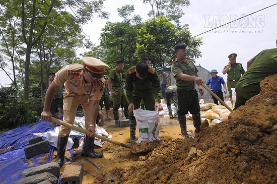 Ngay lập tức, lực lượng công an, bộ đội, dân quân tự về đã được huy động đắp đê, be bờ giúp dân.