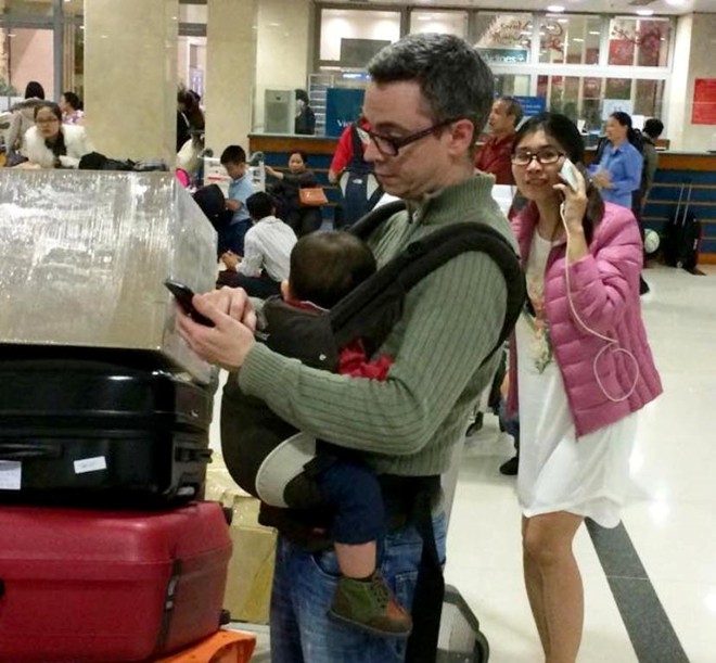 Có nhiều khách là người nước ngoài cũng rơi vào hoàn cảnh như anh Cường, chạy tới chạy lui các khu vực làm thủ tục nhưng không thể khởi hành, chờ đợi vật vờ nhiều giờ. Nhiều gia đình có con nhỏ đi cùng càng lo lắng vì trong thời gian chờ, các bé không được ăn uống hay nghỉ ngơi.