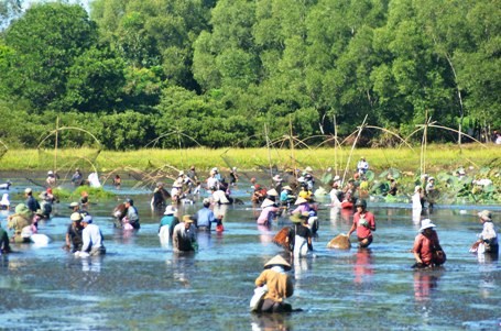 Lễ hội "Xả trằm bắt cá" được tổ chức một lần duy nhất trong năm, sau vụ lúa Hè - Thu. |