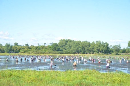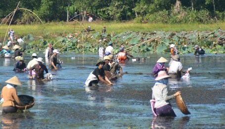 Ngày 6/9, hàng trăm người dân Hải Xuân, Hải Lăng, tỉnh Quảng Trị tưng bừng tham gia ngày hội bắt cá tại Trằm Trà Lộc.
