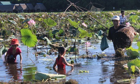 Rất đông du khách các nơi cũng tập trung về Trằm Trà Lộc để tận hưởng không khí miền quê thanh bình và thưởng thức những món ngon của địa phương.