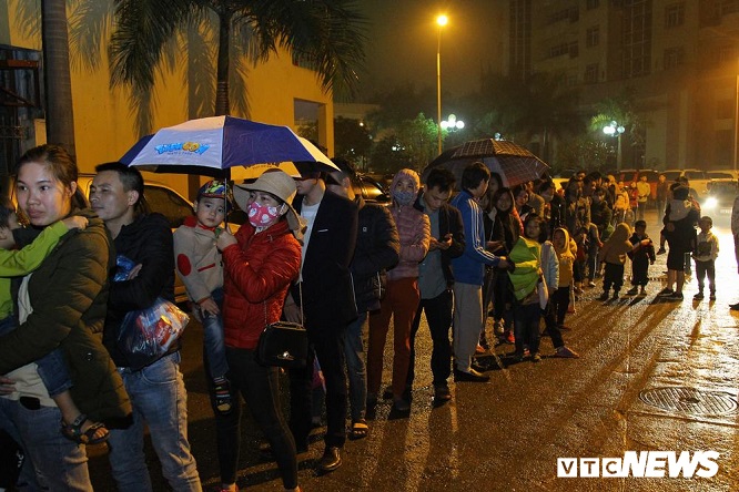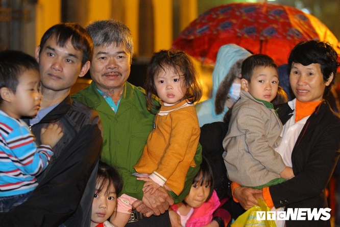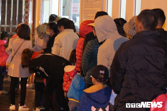 Giữa trời mưa rét, hàng trăm phụ huynh cùng các cháu nhỏ 3, 4 tuổi co ro xếp hàng tại Viện Sốt rét - Ký sinh trùng và Côn trùng Trung ương. Ảnh: Vietnamnet |