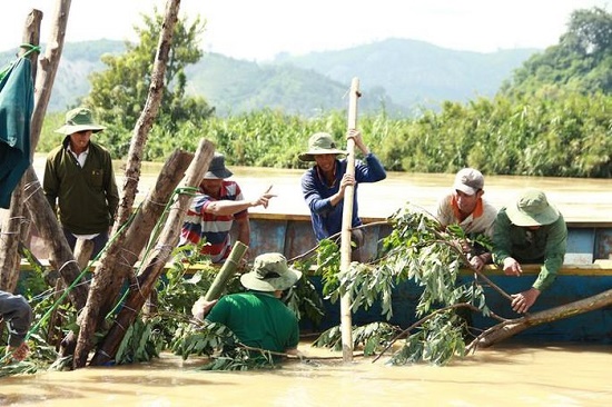 Hàng trăm người dân tại xã Quảng Điền và Quảng Hòa (huyện Krông Ana, tỉnh Đắk Lắk) Đắk Lắk) phải căng mình tìm cách ngăn nước từ sông tràn qua đê, cứu hàng nghìn ha lúa.