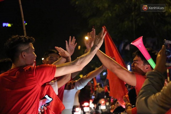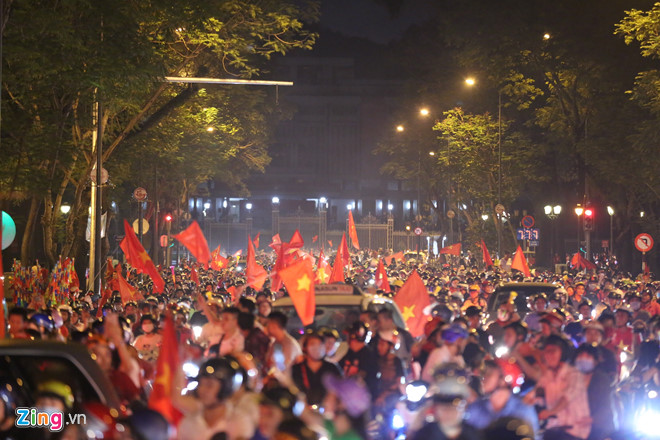 Ngay sau khi tiếng còi kết thúc trận đấu bán kết lượt về giữa đội tuyển Việt Nam và Philippines trên SVĐ Mỹ Đình vang lên, dòng người với cờ hoa rực rỡ đã cùng nhau đổ ra đường hò reo, ăn mừng chiến thắng.