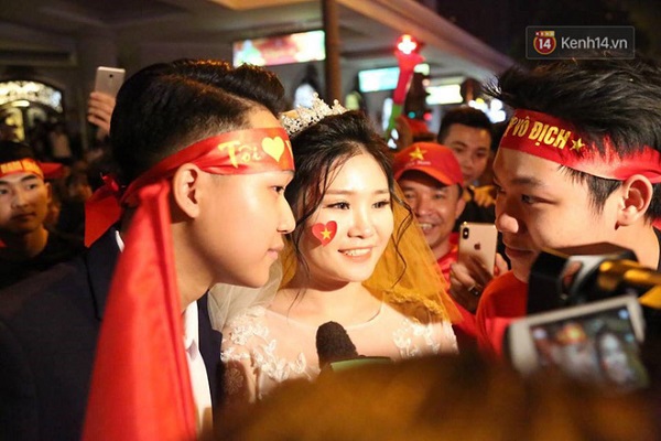 Cô dâu, chú rể cũng hòa chung bầu không khí đó - Ảnh: Kênh 14 |