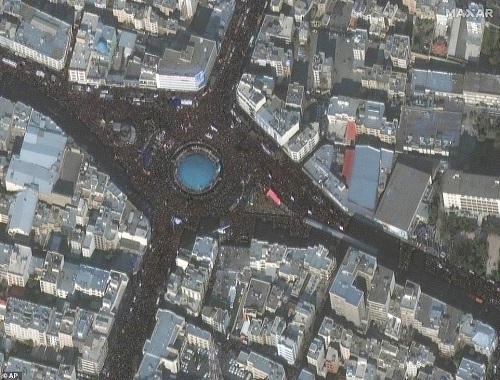 Ảnh chụp từ trên cao cho thấy biển người đưa tiễn tướng Soleimani. Ảnh: AP |