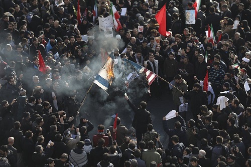 Người Iran xuống đường mang theo chân dung tướng Qasem Soleimani, Tư lệnh Lực lượng Quds tinh nhuệ thuộc Vệ binh Cách mạng Iran, được xem là người quyền lực số 2 ở Iran và nắm trong tay các phiến quân thân Iran trên khắp Trung Đông. Ảnh: AP. |