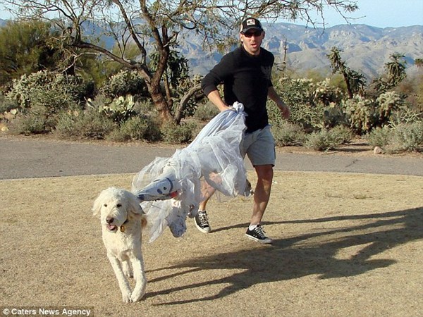 Sau cuộc ly hôn, người đàn ông Mỹ nghĩ ra chiêu “độc” để vượt qua nỗi đau tinh thần bằng cách “hành hạ” chiếc váy cưới của vợ cũ. Anh biến chúng thành chiếc võng, áo choàng, dây xích chó....
