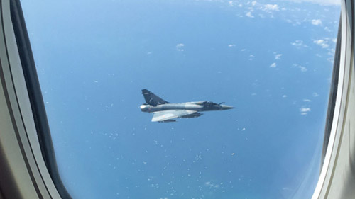 Những hành khách có mặt trên một chuyến bay thương mại của hãng hàng không giá rẻ Jet2 của Anh được phen khiếp vía khi thấy một chiến đấu cơ Pháp áp sát.