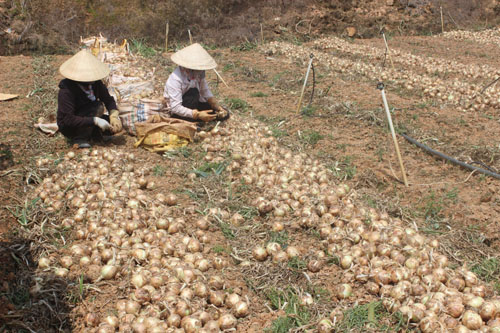 Hành tây, khoai tây Đà Lạt rớt giá mạnh. Ảnh: VnExpress |