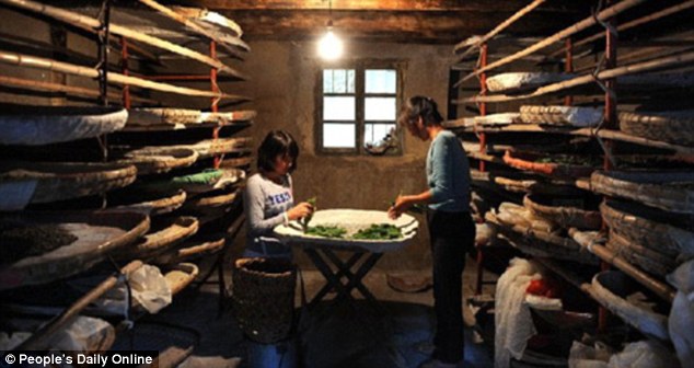 Hoàn cảnh khó khăn, trang trại của gia đình Qian nuôi tằm, dệt lụa để kiếm sống. Trong ảnh là Qian cùng với mẹ. Ảnh: Nhân dân Nhật báo. |