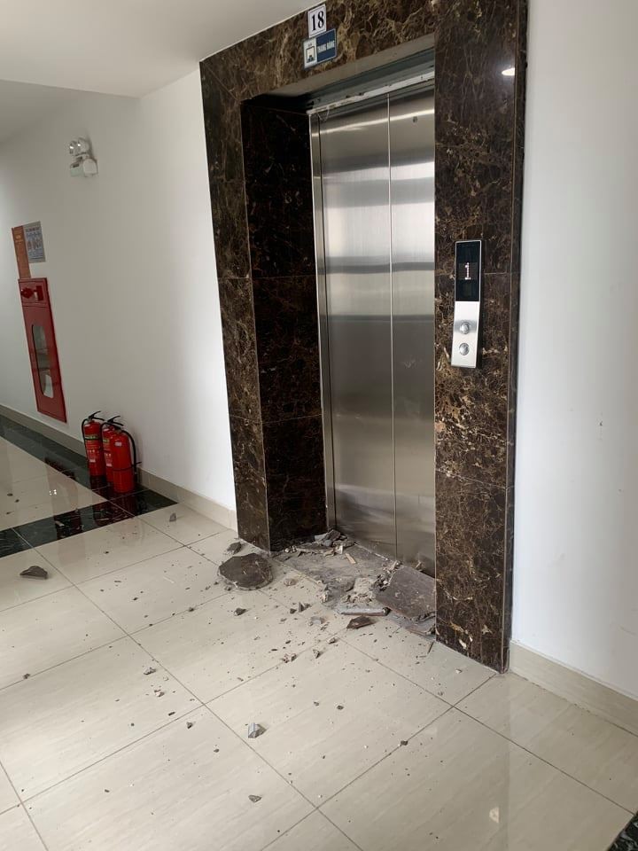 Rất may, thời điểm xảy ra sự việc không có cư dân nào ra vào thang máy nên không ai bị thương. Tuy nhiên, việc đá ốp lát bất ngờ rơi xuống sàn khiến cư dân không khỏi lo lắng. Một dấu hỏi lớn được cư dân đặt ra về chất lượng xây dựng của công trình này.