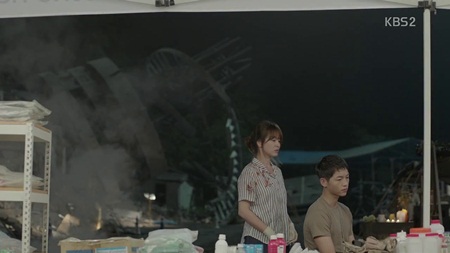 Những lời chân thành của anh giữa khung cảnh hoang tàn, đổ nát và khói lửa ngập tràn khiến cho cả Mo Yeon và khán giả đều cảm động, mặc dù đó là phân cảnh tình cảm hiếm hoi của cặp đôi chính trong tập 7 "Hậu duệ của Mặt Trời".