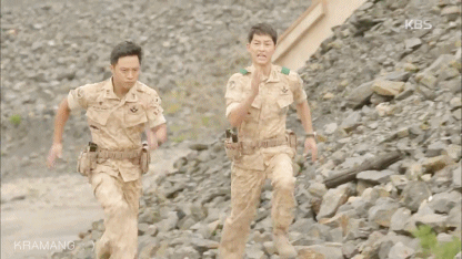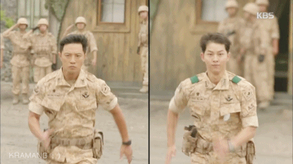 Ở một tình tiết khác trong tập 10 "Hậu duệ Mặt Trời", lần đầu tiên các anh lính của trung đội Alpha được thấy hai người chỉ huy của mình hoảng hốt, vội vàng chạy thục mạng đến như vậy.