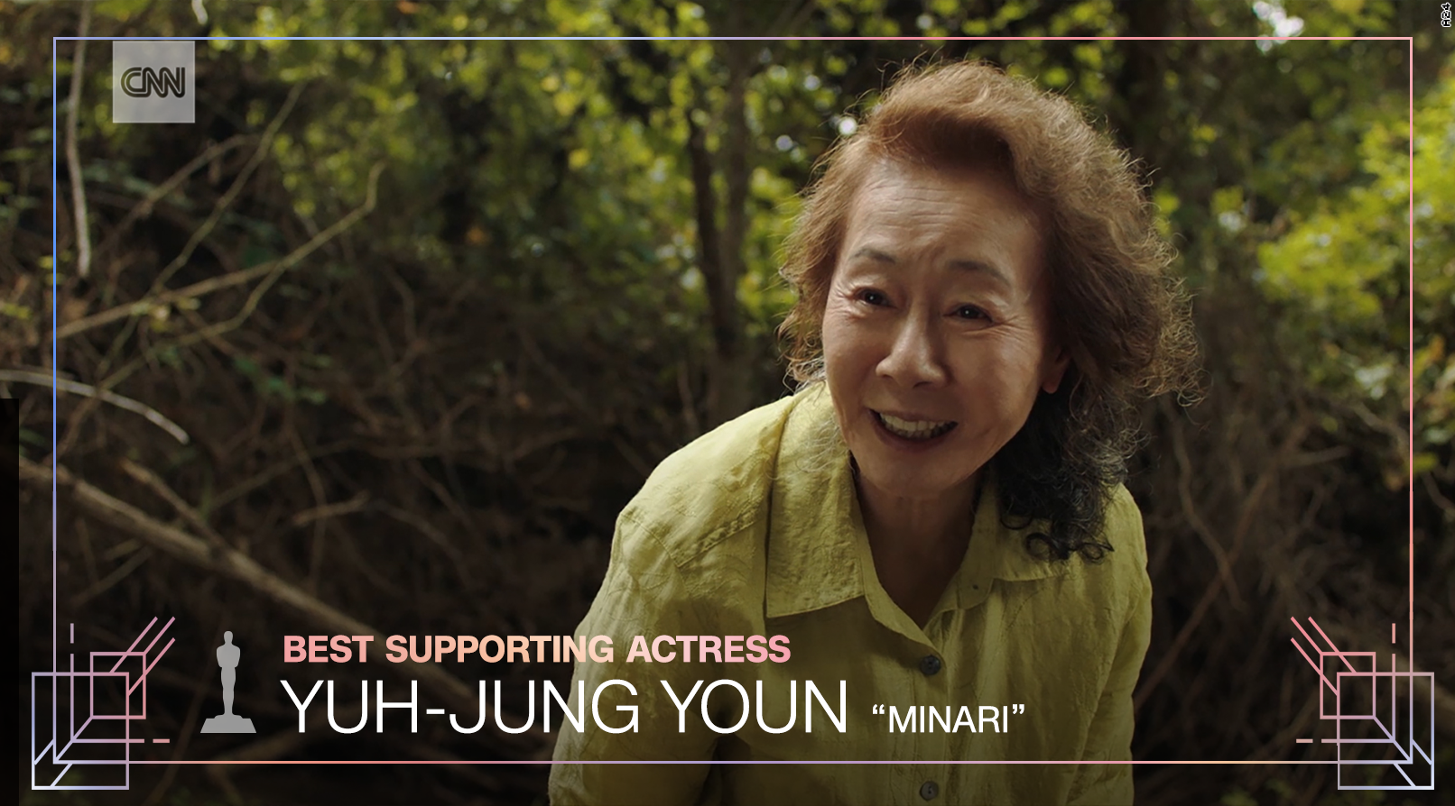 Nữ diễn viên Youn Yuh-jung nhận giải "Nữ diễn viên phụ xuất sắc nhất" tại Oscar 2021. Ảnh: CNN |
