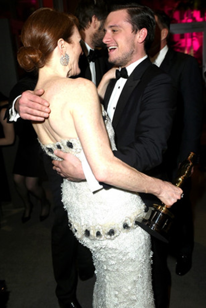 ![]() Nữ diễn viên "Birdman" Emma Stone và Julianne Moore chia sẻ một khoảnh khắc vui vẻ tại bữa tiệc sau lễ trao giải. |