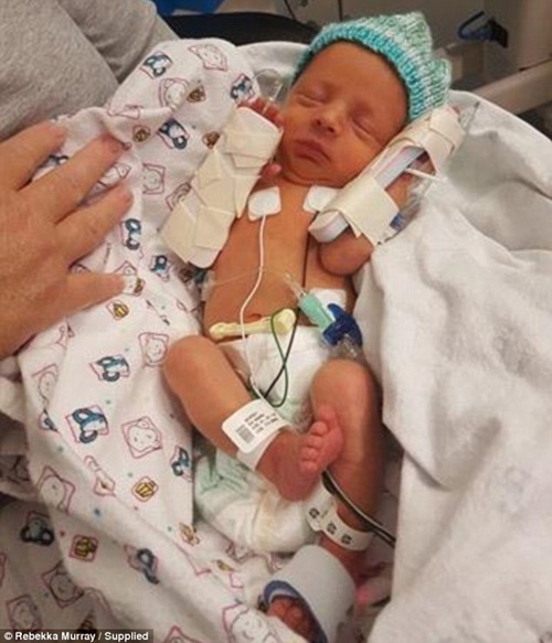 Ở tuần thứ 35 thêm 5 ngày, bé Jackson đã bị buộc phải ra đời qua phương pháp sinh mổ, cân nặng 1,98kg. Từ tuần thứ 30, bé đã dừng tăng trưởng và có dấu hiệu thiếu máu. Bé phải nằm ở phòng chăm sóc đặc biệt suốt một tháng trời.