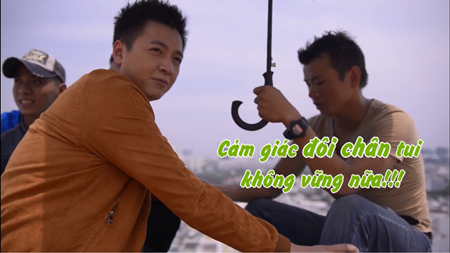 Mới đây, nhà sản xuất đã tung ra clip hậu trường dành cho fan của chàng Bắp (biệt danh của Ngô Kiến Huy), trong đó tiết lộ nhiều cảnh tượng vô cùng... khó đỡ. Đáng chú ý nhất là cảnh Kiến Huy đứng trên lan can tầng 16, góc máy cho thấy độ cao hun hút ngay dưới chân anh, chỉ trượt chân một chút là sẽ vô cùng nguy hiểm đến tính mạng.