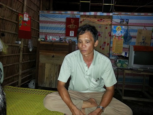 Lần ấy phải nhờ sự giúp đỡ của rất nhiều dân quân và lực lượng bộ đội mới có thể dựng được ngôi nhà tạm của gia đình bằng là dừa như hiện nay. “Vào những hôm trời mưa, mái không đủ che chắn làm trong nhà ngấm nước. Sân ngoài thấp không sửa chữa nên nước từ con kênh gần nhà dâng lên, ngập lênh láng. Ngày nắng thì trong nhà rất nóng nực như cái lò hơi vậy”, ông Mười ngậm ngùi kể.
