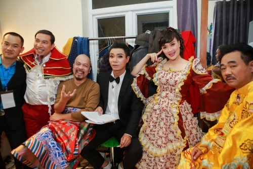 NTK Đức Hùng chỉnh trang trang phục cho các nghệ sĩ. |