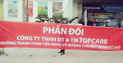 Không chỉ có khách hàng đã mua hàng tại Topcare bị ảnh hưởng mà nhà cung ứng cho Topcare cũng bất bình. Một số đối tác thậm chí giăng băng rôn để phản đối việc chây ì nợ của Công ty TNHH ĐT&TM Topcare.