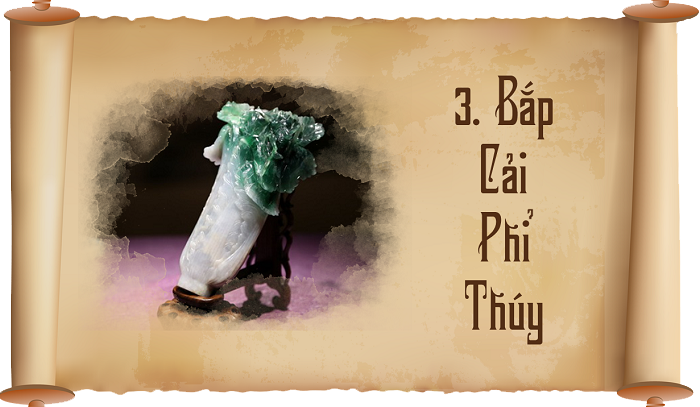 Ngoài Phỉ Thúy dưa hấu, bên trong lăng mộ Từ Hy Thái hậu còn có hai cây bắp cải Phỉ Thúy tinh xảo khác. Cuống cải trắng nõn, lá cải bao quanh trên lá có con châu chấu bên cạnh lá màu xanh còn có hai con ong vàng, sống động y như thật, ở thời điểm đó nó có giá khoảng mười triệu lượng bạc, bây giờ bắp cải Phỉ Thúy trở thành báu vật vô giá.