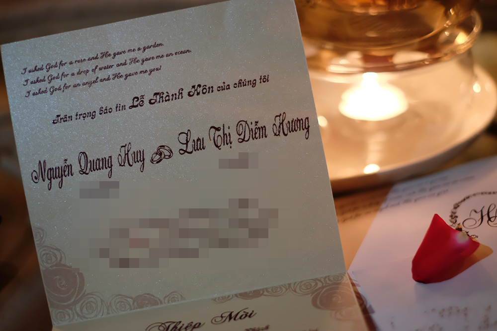 Thiệp cưới của Hoa hậu Diễm Hương. |