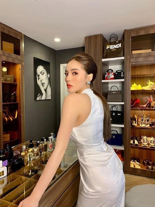 Tủ đồ của Kỳ Duyên phủ đầy những món đồ đắt đỏ, là không gian quen thuộc trong những vlog đập hộp của hoa hậu. |