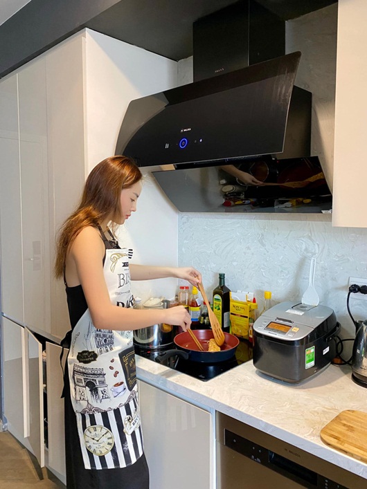 Kỳ Duyên thường xuyên đứng bếp, nấu các món ngon mời bạn bè đến nhà ăn uống, tụ tập. |