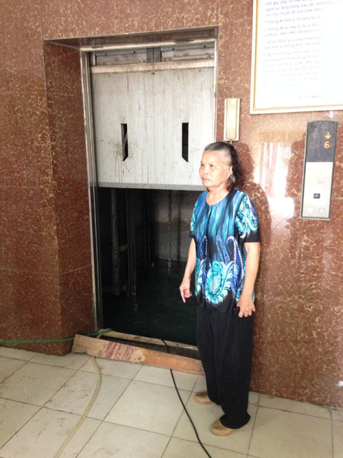 | Thực trạng thang máy đang hỏng ở tầng 1. |