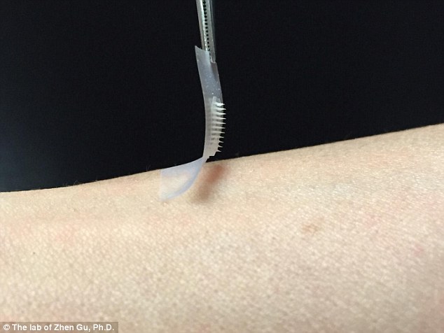 Miếng vá thông minh này là một hình vuông mỏng nhỏ hơn đồng xu, được bao phủ bởi hơn một trăm chiếc kim tiêm nhỏ xíu, có kích thước chỉ bằng lông mi.