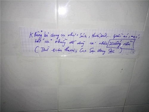 Ngoài ra, trong phòng tắm, khu vực bếp ăn, chỗ ngủ đều có dán nội quy rõ ràng!