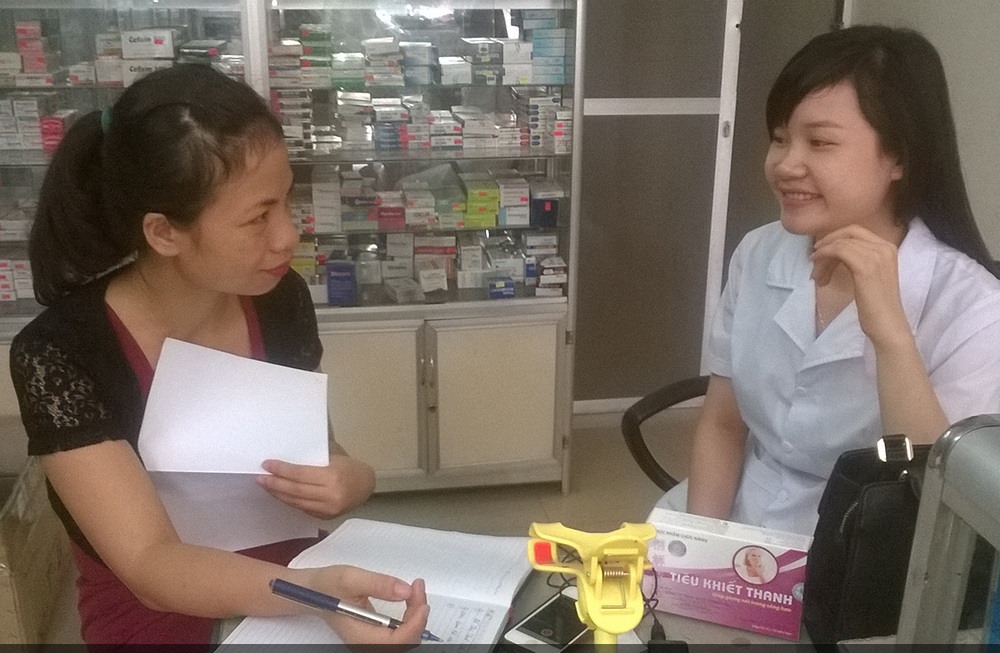 Thư cho biết, từ nhỏ họng của cô đã rất kém, cứ mỗi lần trở trời là y rằng họng lại sưng đau khiến cô không ăn uống được, cảm giác như lúc nào cũng có cục đờm đặc quánh tắc nghẽn trong cổ. Thông thường khoảng 1 ngày sau khi phát bệnh, cô bắt đầu khản giọng, có khi mất tiếng hoàn toàn. “Mỗi lần nói chuyện với bạn bè, thầy cô giáo em cứ phải gằn giọng cho mọi người nghe thấy nên rất là mệt. Nhất là khi đi làm, công việc bán hàng phải nói chuyện với khách nhiều nên càng phiền. Khách hàng mua thuốc họ thường hỏi rất lâu, có người đứng hỏi cả tiếng đồng hồ nên những hôm trở trời đúng là cực hình với em. Thế nên những ngày bị bệnh, em thường phải xin nghỉ học hoặc nghỉ làm” – Thư cho biết.