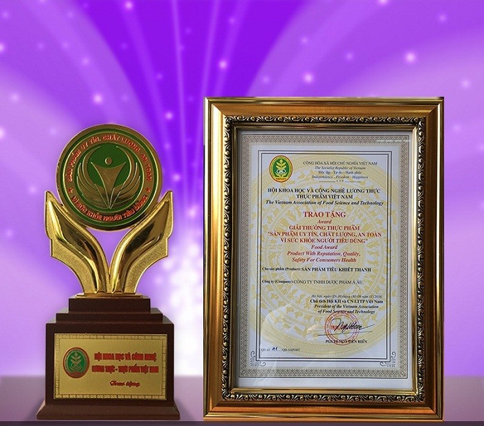 + Sản phẩm uy tín, chất lượng, an toàn, vì sức khỏe người tiêu dùng do Hội khoa học công nghệ và lương thực thực phẩm Việt Nam bình chọn