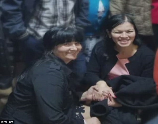 Tatyana (trái) và Valentina (phải) vui mừng khi gặp nhau. |