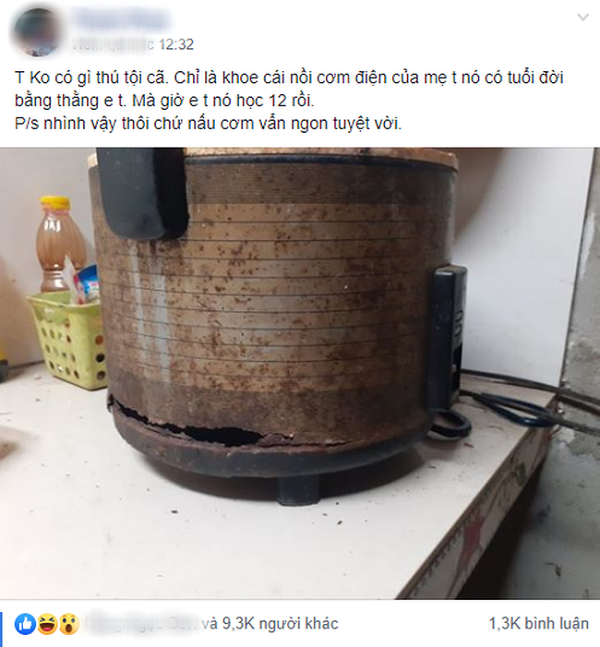 Cụ thể, một anh chàng đã đăng tải lên mạng xã hội để khoe chiếc nồi cơm điện nhà mình, anh chàng viết: "Chỉ là khoe cái nồi cơm điện của mẹ mình thôi, nó có tuổi đời bằng thằng em mình rồi, mà giờ em mình nó học lớp 12 rồi. Nhìn vậy thôi chứ nấu cơm vẫn ngon tuyệt vời".