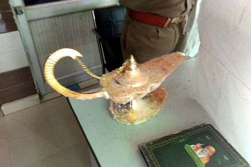 Chiếc đèn mà bác sĩ Laeek Khan bị lừa mua. Ảnh: Cảnh sát Utter Pradesh cung cấp/ Mirror |