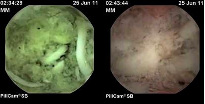 Theo một nghiên cứu tại Đại học Havard, hai tình nguyện viên tiến hành nuốt viên nhộng có chứa camera siêu nhỏ và máy giám sát vô tuyến cùng thức ăn.